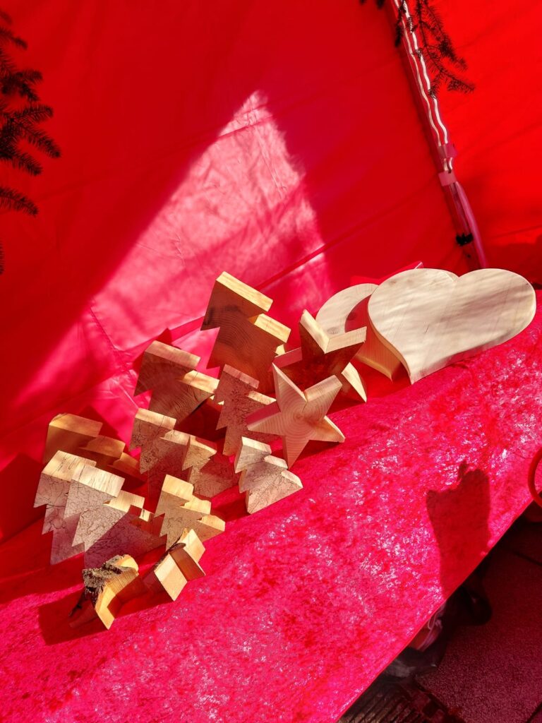 Am schön dekorierten Stand wurden selbst gefertigte, weihnachtliche Holzdekorationen, handgestrickte Socken und Schals sowie die von unseren Backgruppen gebackenen „Dußlinger Schnitzbrotlaible“, Honiglebkuchen und Springerle mit unserem Logo angeboten.