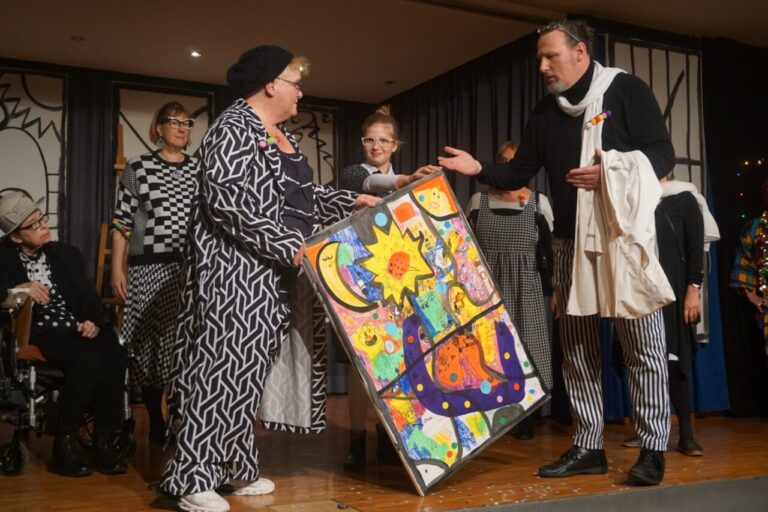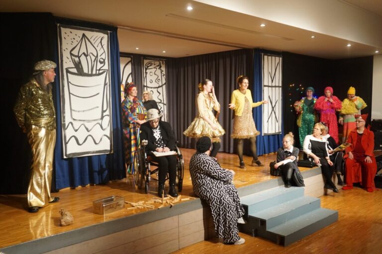 Das 16-köpfige Ensemble begeisterte das Publikum mit ausdrucksstarker schauspielerischer Leistung in einer Inszenierung voller Humor, Herz und einer ordentlichen Prise Weisheit rund um das Thema Glück.