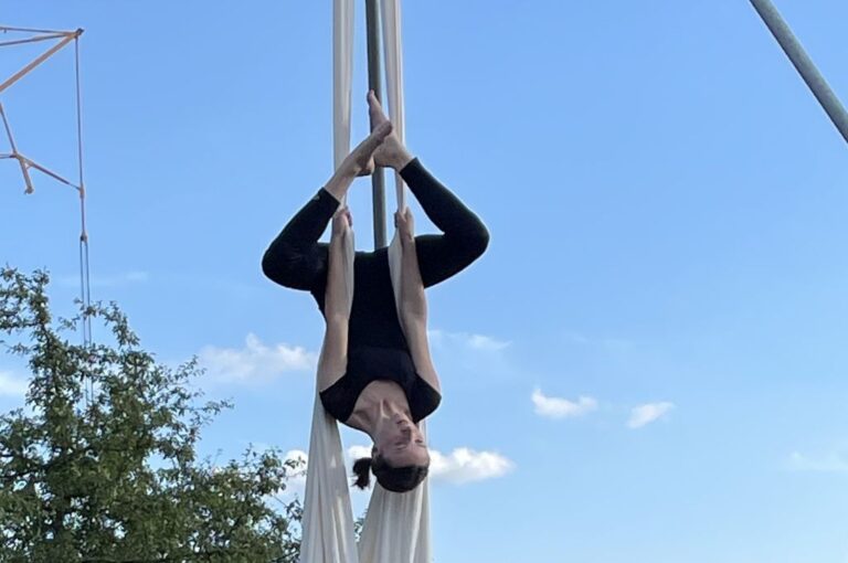 Als besonderes Highlight des Abends boten die Jugendlichen der Luftartistikgruppe „On Air“ der TSG Tübingen spektakuläre akrobatische und tänzerische Elemente am Seil, am Ring, an Strapaten und am Vertikaltuch.